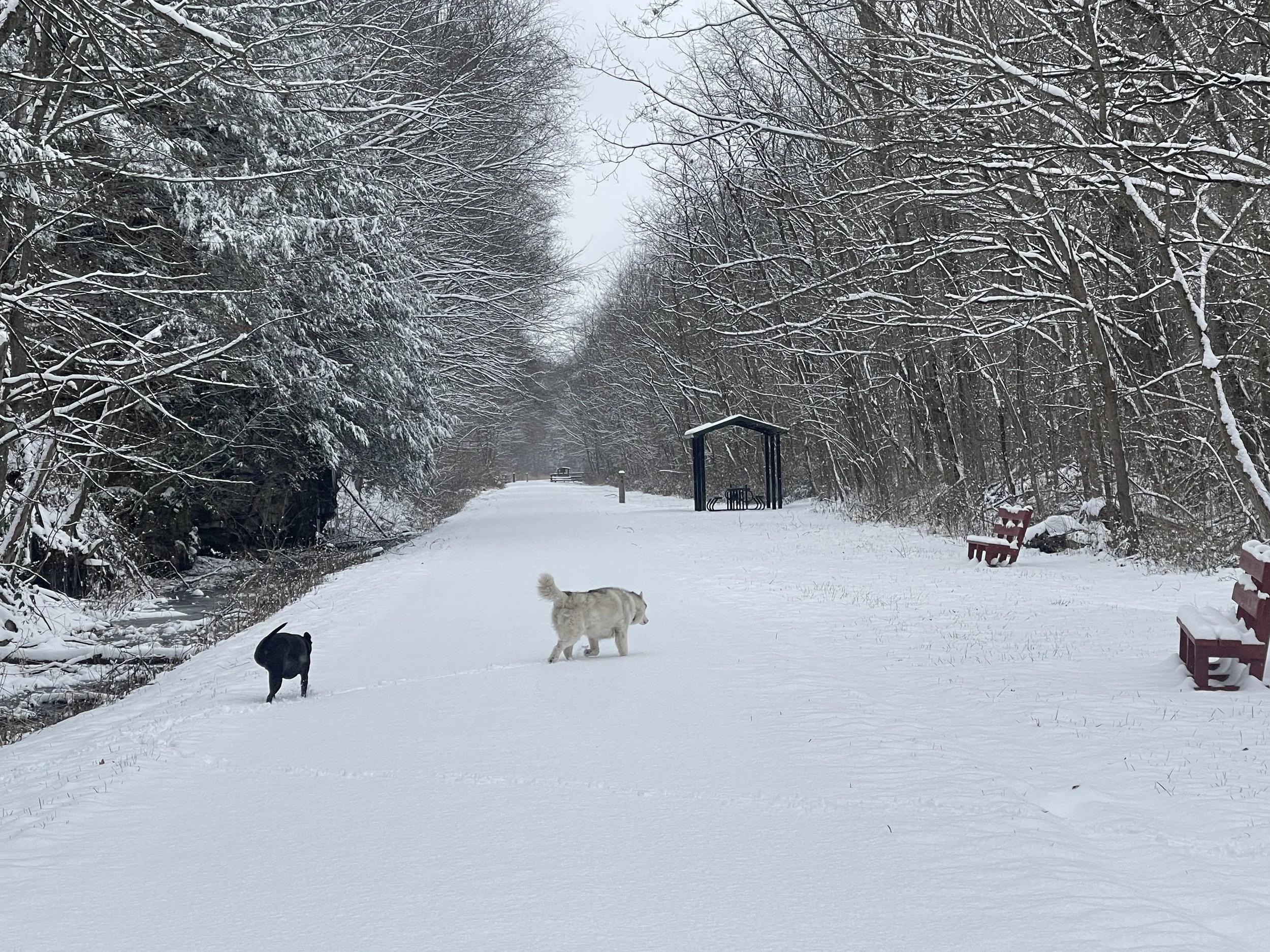 Bella & Merlin loving this first snow fall of December 2, 2025